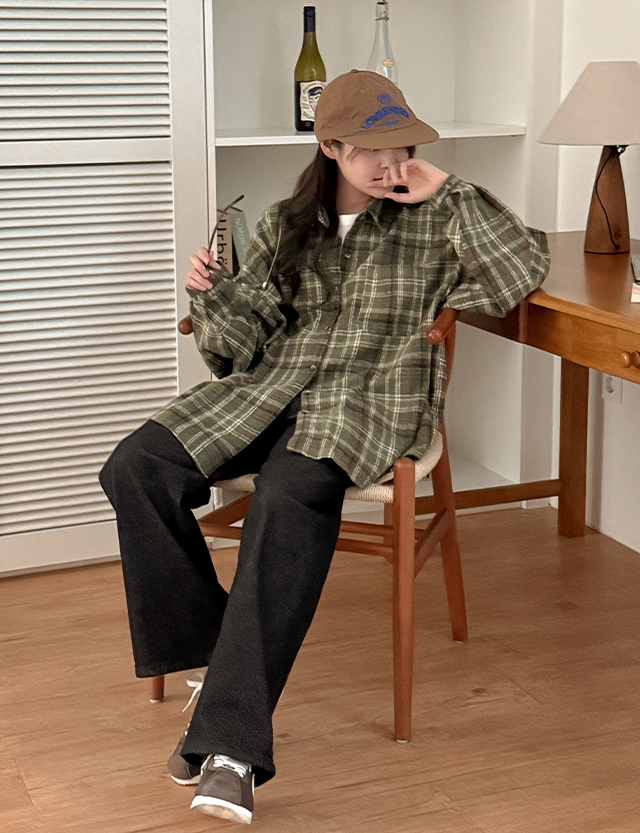 앤드링 ルーズフィット 패치 チェック シャツ 85943