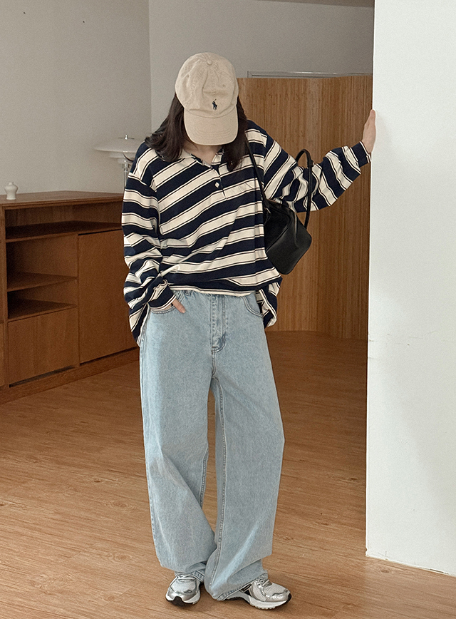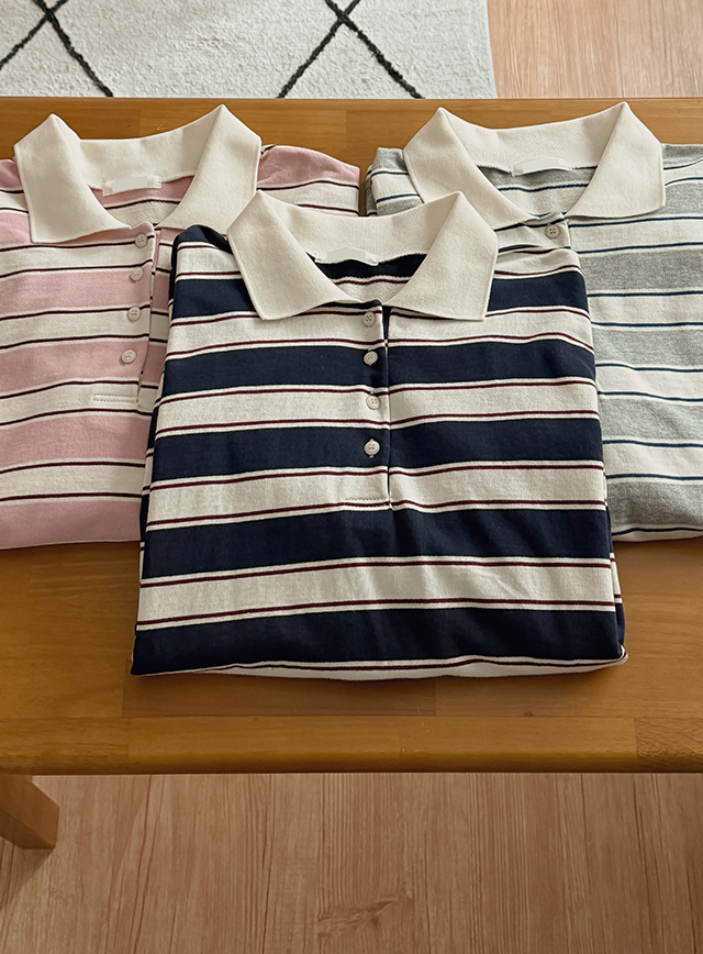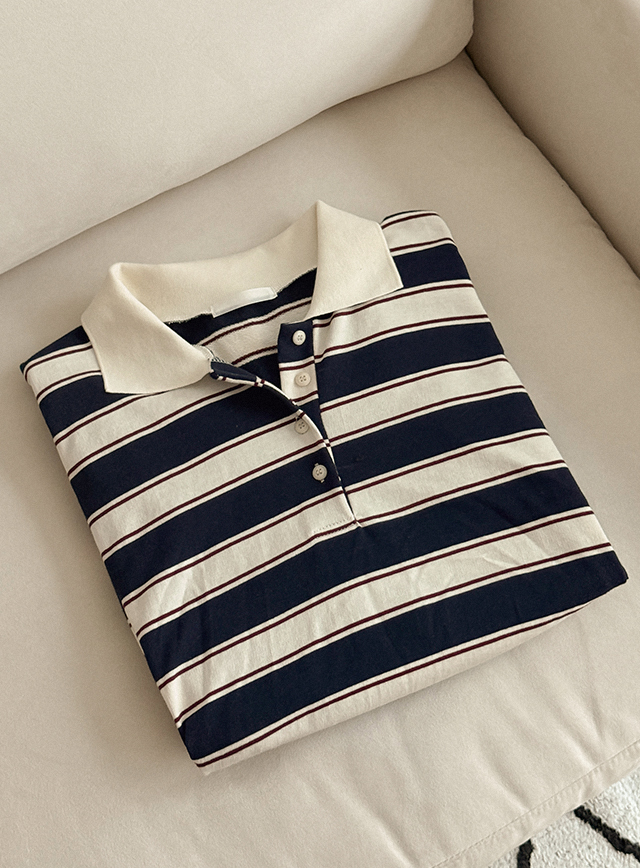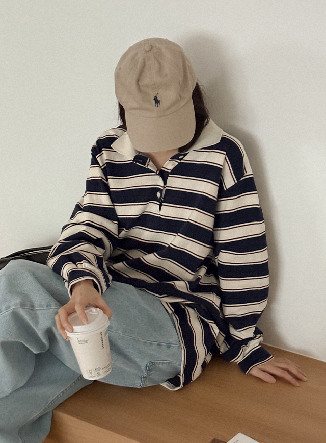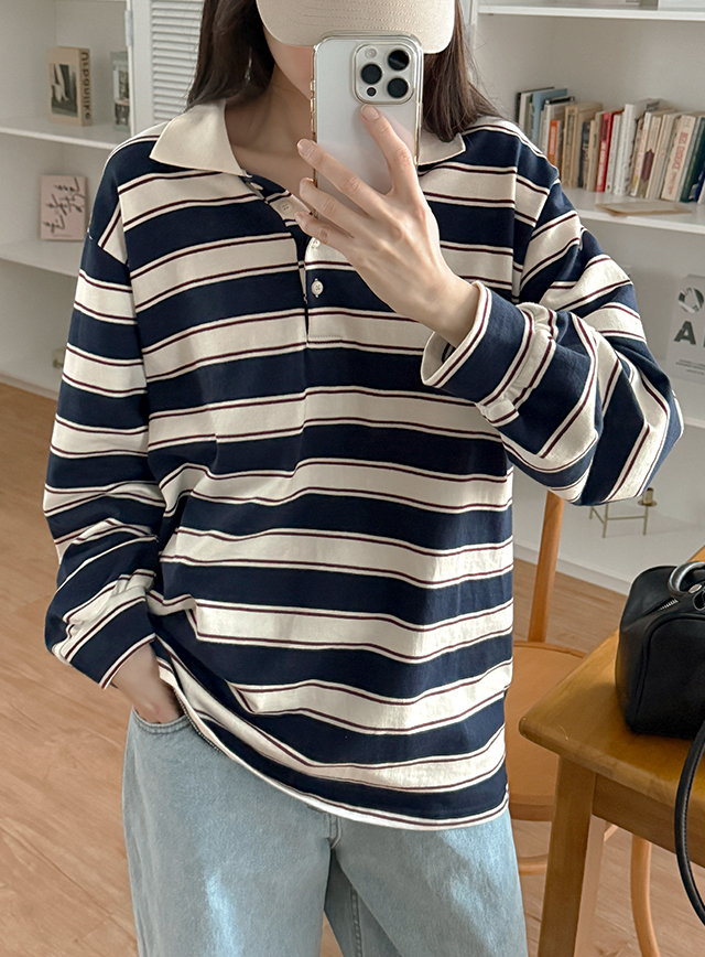룩셀 ルーズフィット カラー ストライプ ティーシャツ 85994