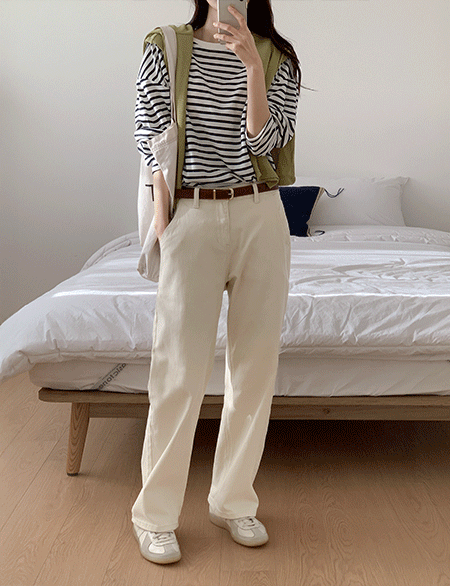 마이데일리 뒷밴딩 세미 ワイド コットン パンツ 85953