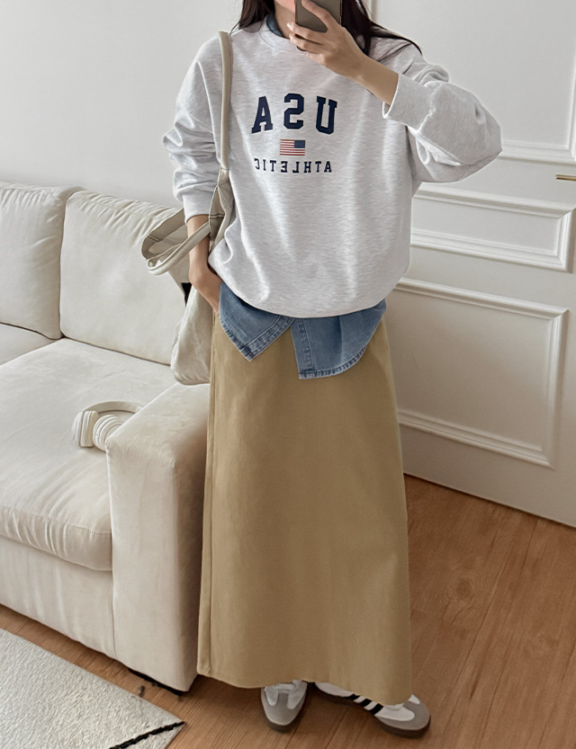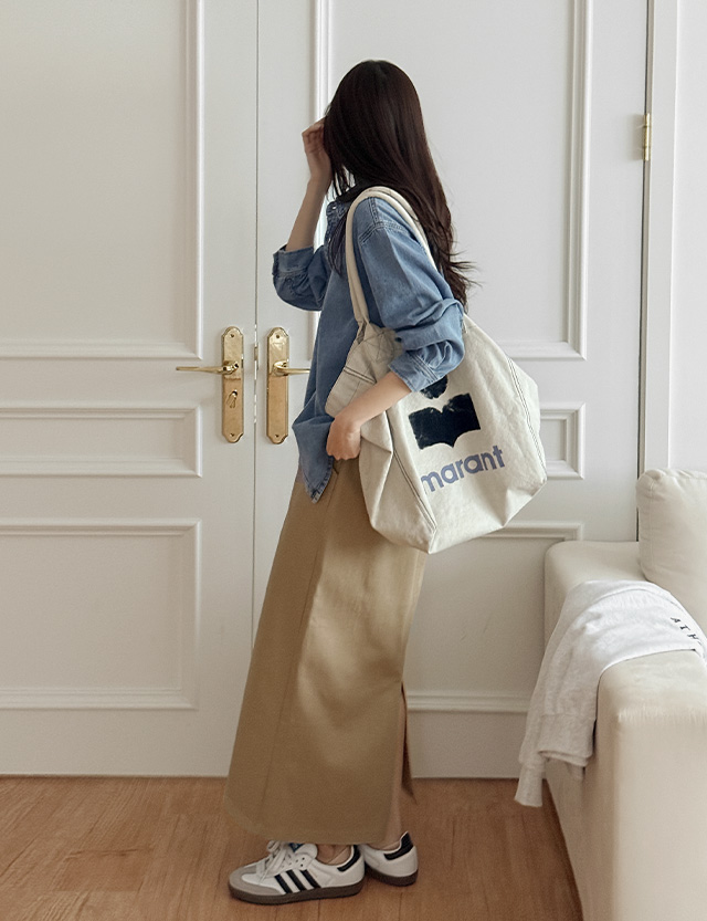 마리브 뒷밴딩 Hライン コットン 맥시 ロング スカート 86043