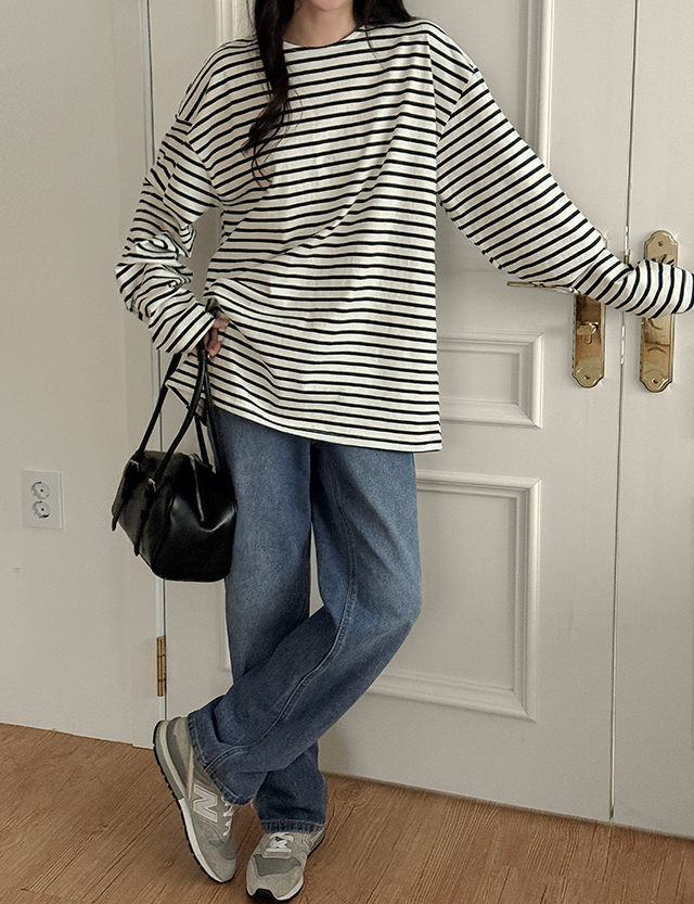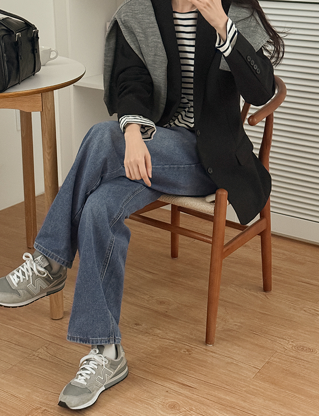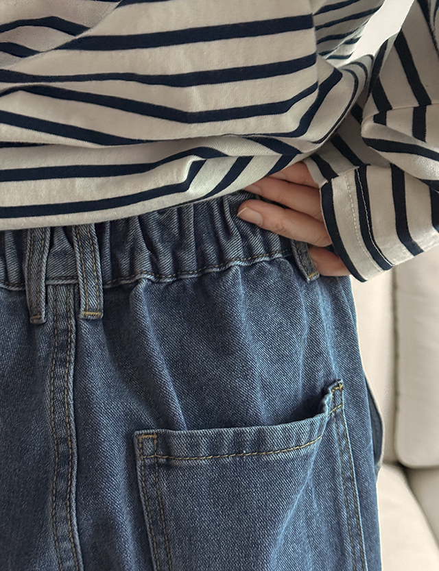 [5XL까지]버턴 ウォッシュ 뒷밴딩 ワイド デニム パンツ 86004