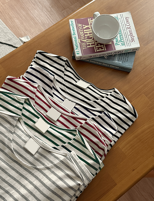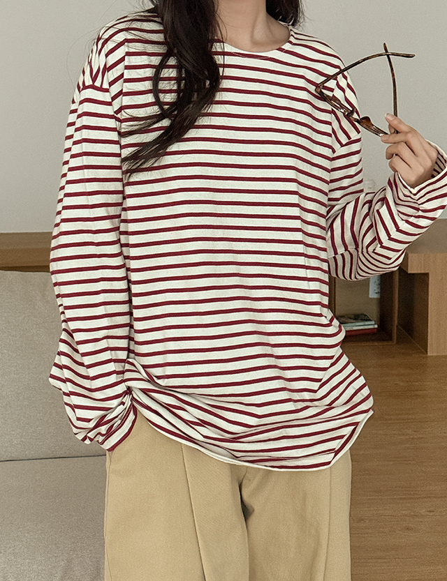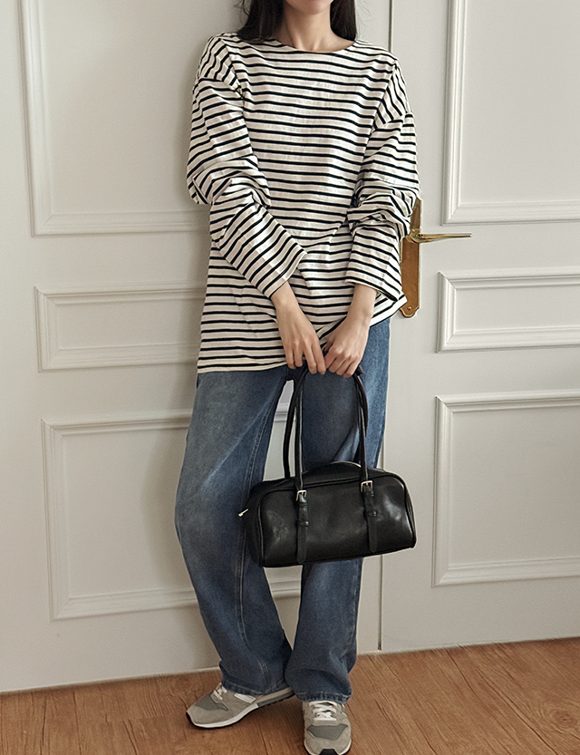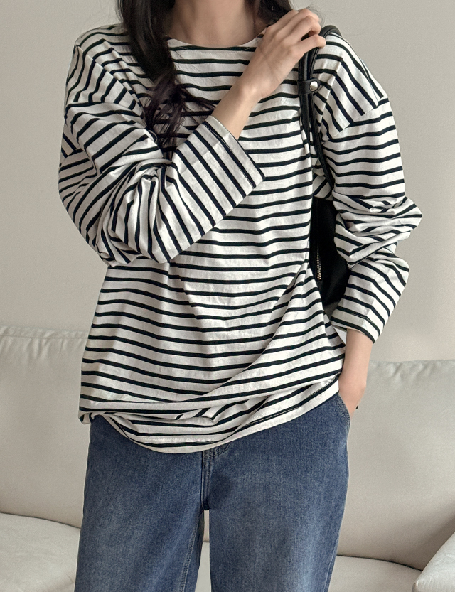 드림 ストライプ 보트넥 長袖 ティーシャツ 86003