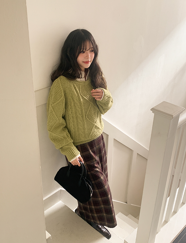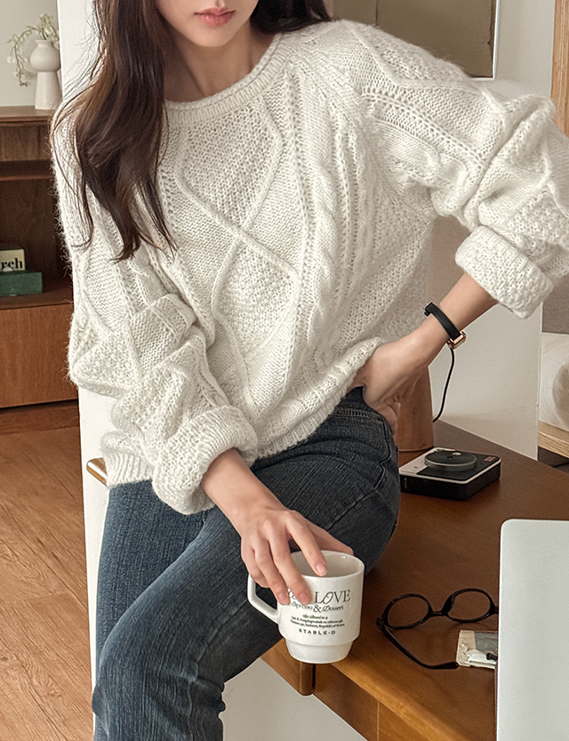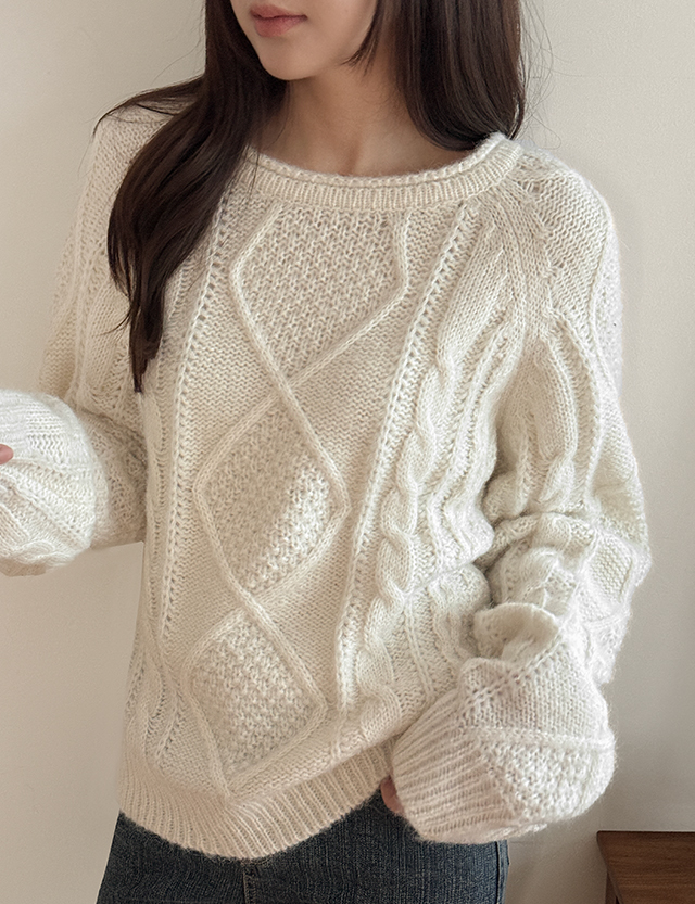 마이니 ルーズフィット 케이블 ウール ニット 85543