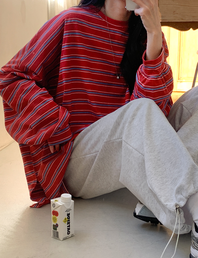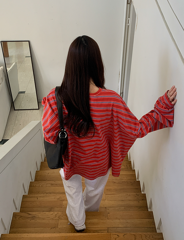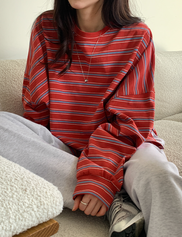 포즈 カラー ストライプ スウェット ティーシャツ 86059