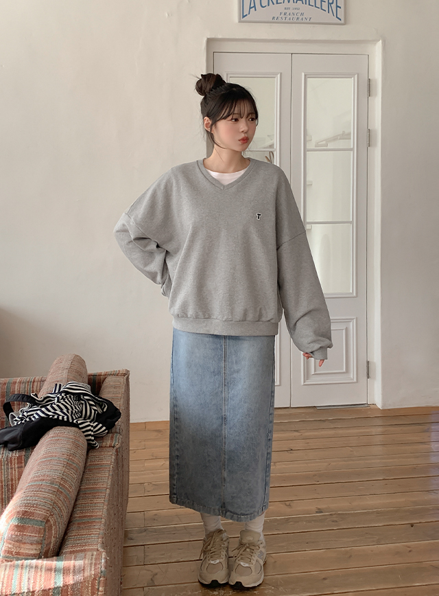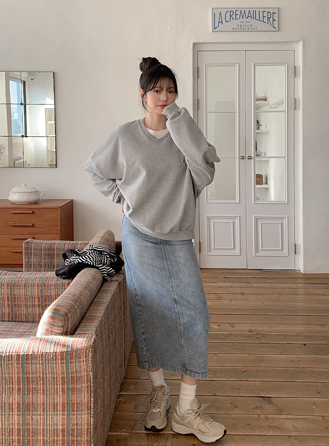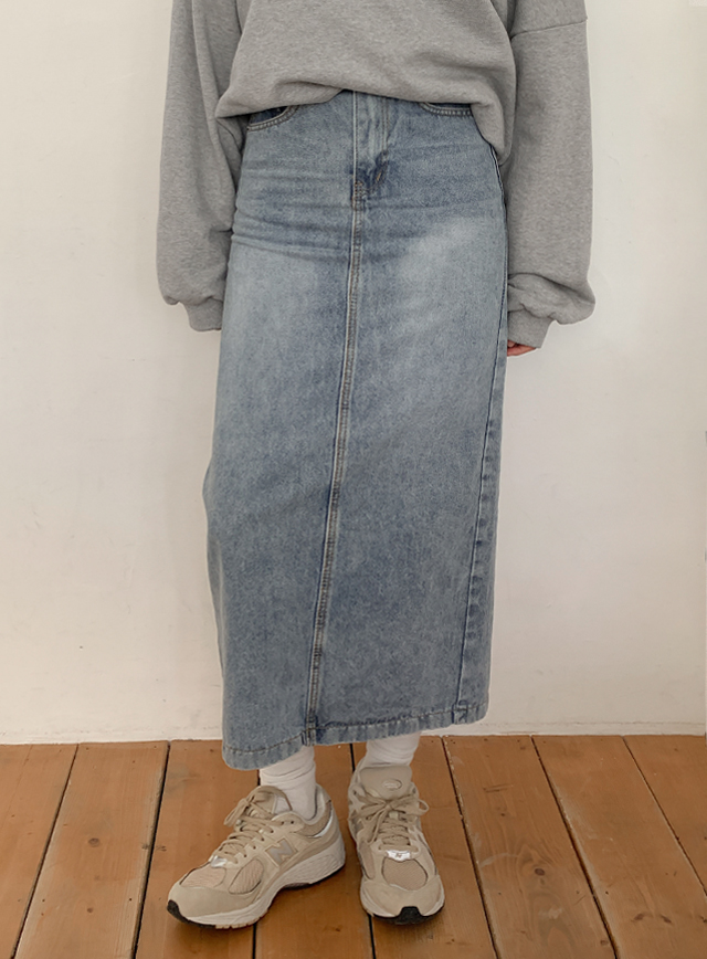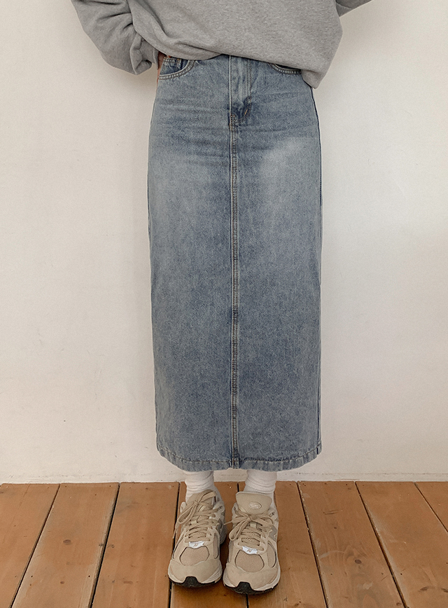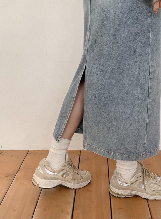 [2가지기장] 샤투아 뒷밴딩 スリット ロング デニム スカート 86137