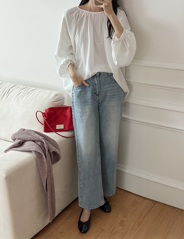[3가지기장] 컬리프 뒷밴딩 ワイド デニム パンツ 86040
