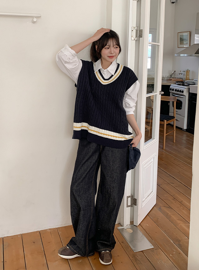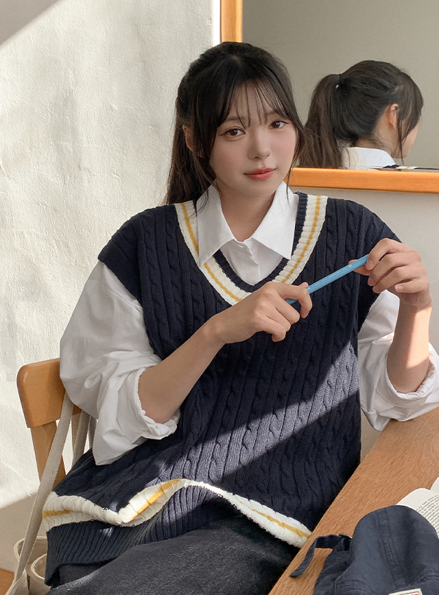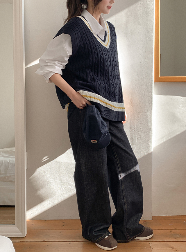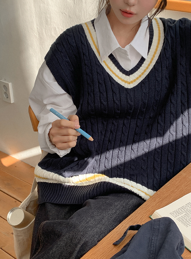 우브디 バクシー 케이블 Vネック ニット ベスト 86139