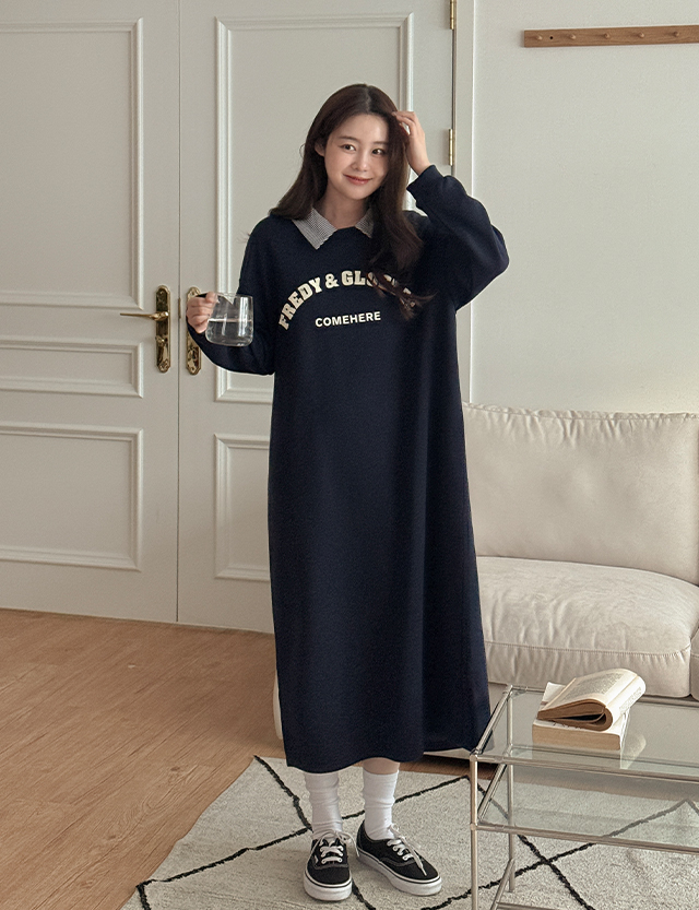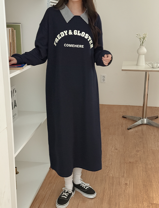 누앙 ルーズフィット カラー ポイント スリット ロング ワンピース 86111