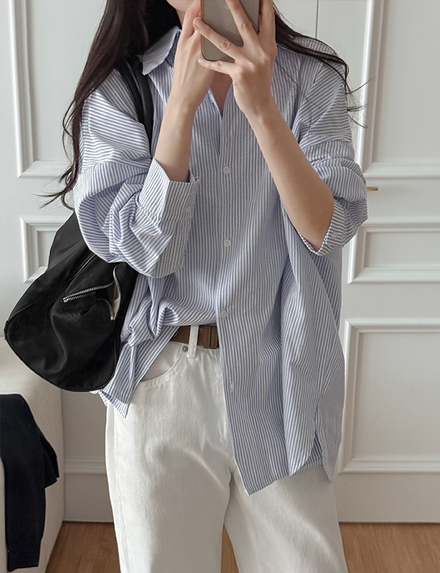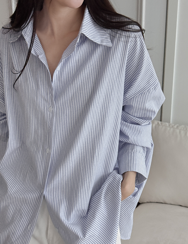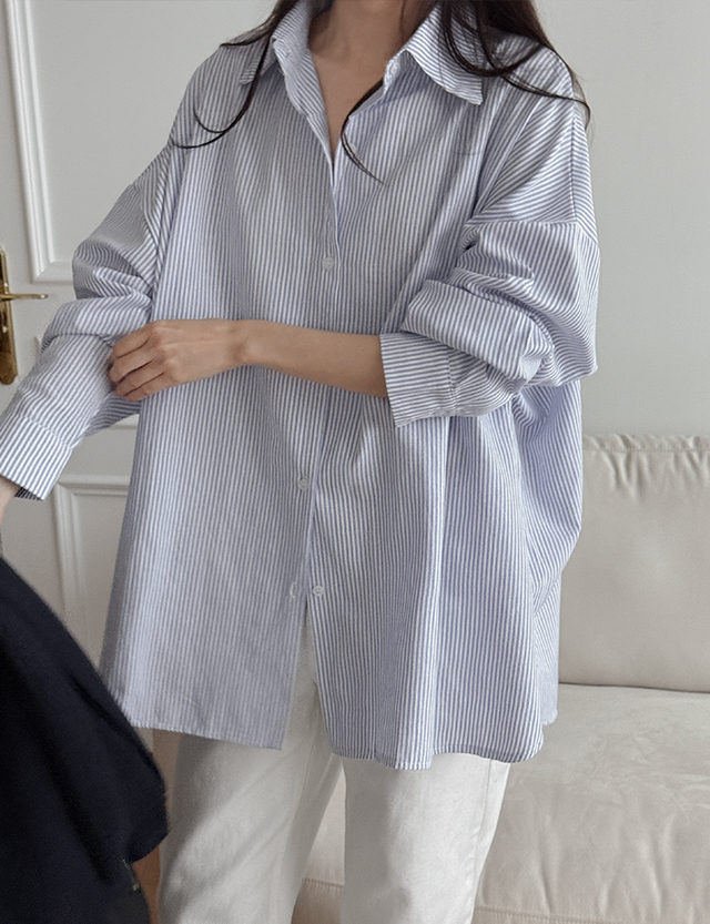 클래식하게 デイリー ルーズフィット ストライプ シャツ 86089