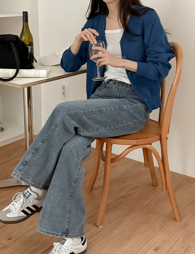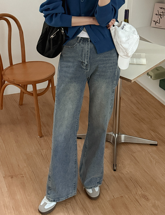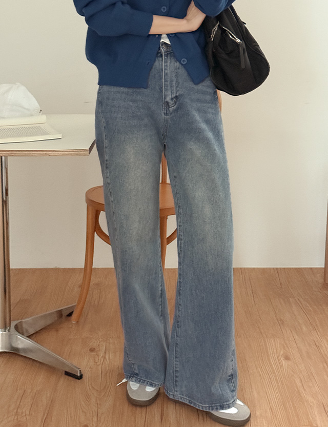 [2가지기장] 플리 サイド 절개 세미 ワイド デニム パンツ 86033