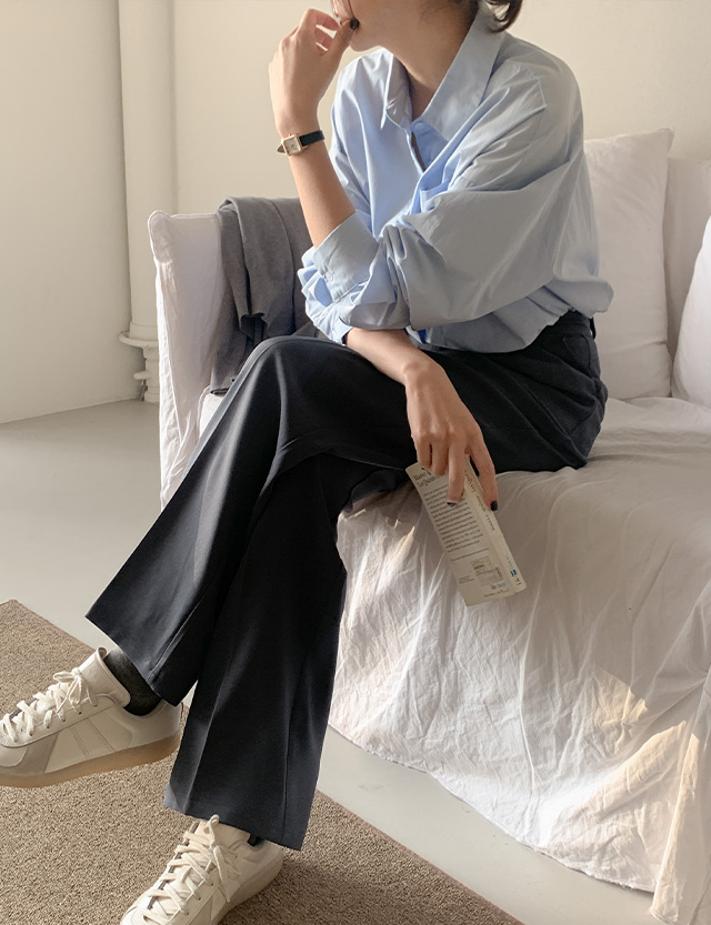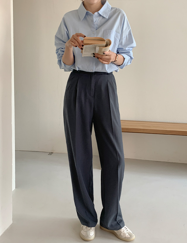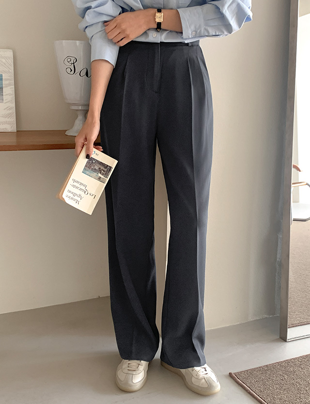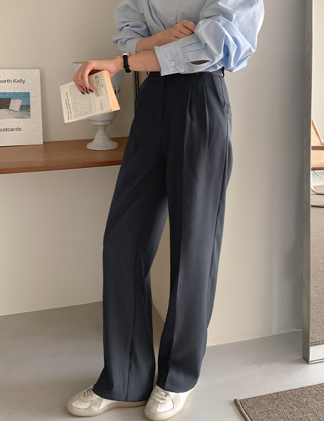 [3가지기장] 델투 뒷밴딩 핀턱 ワイド スラックス 86077