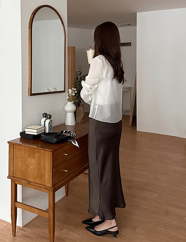 드뮤 머메이드 ゴム 샤틴 ロング スカート 86121