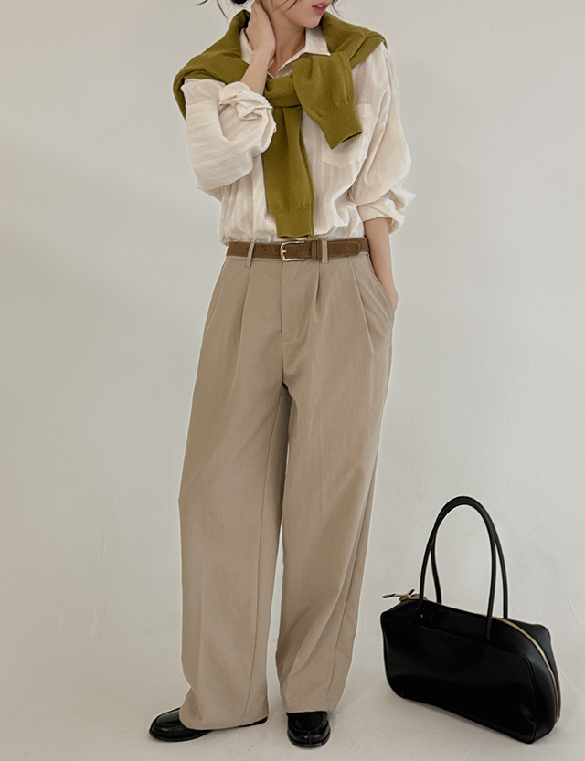 [2가지기장] 워너블 뒷밴딩 ワイド 핀턱 スラックス 86051
