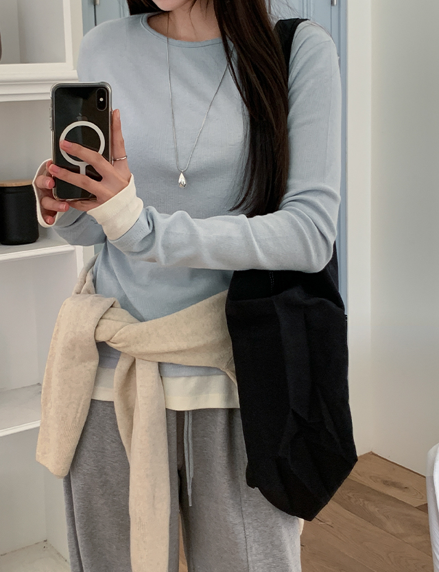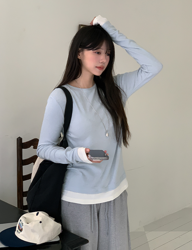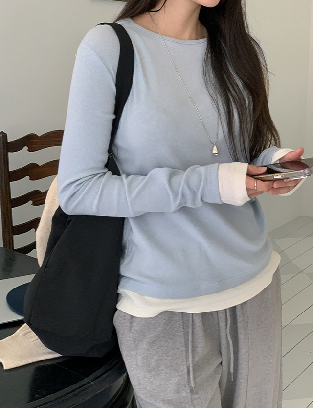 머프리 デイリー 配色 レイヤード 長袖 ティーシャツ 86183