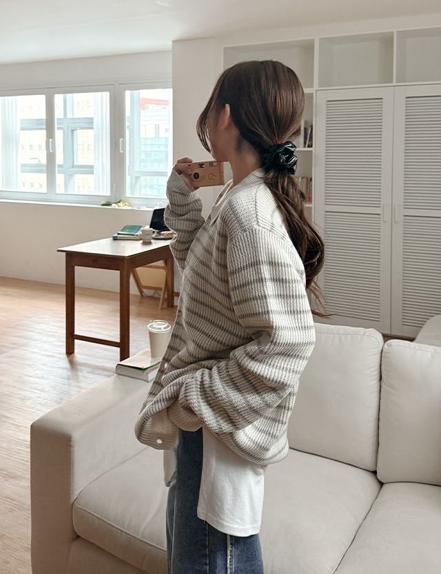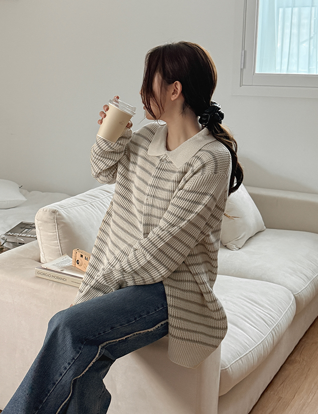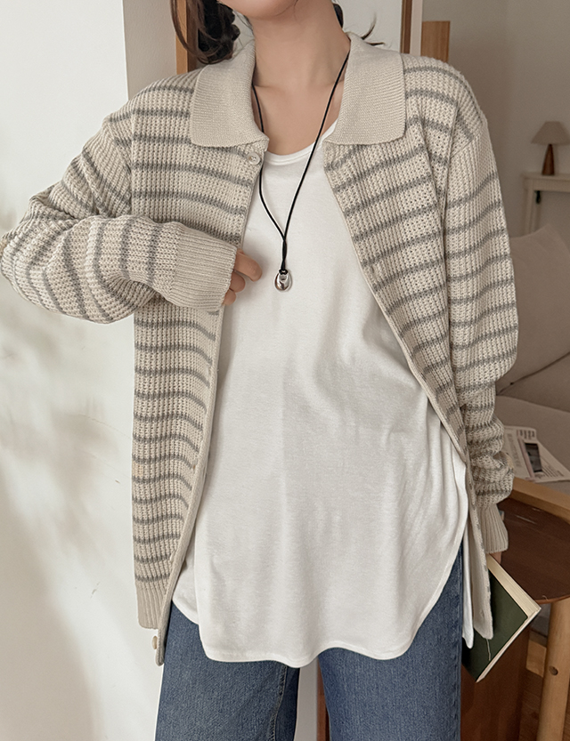 모렌 ストライプ カラー ニット カーディガン 86259