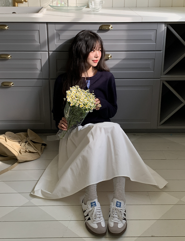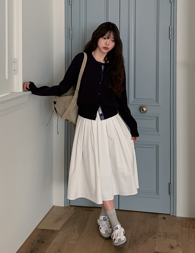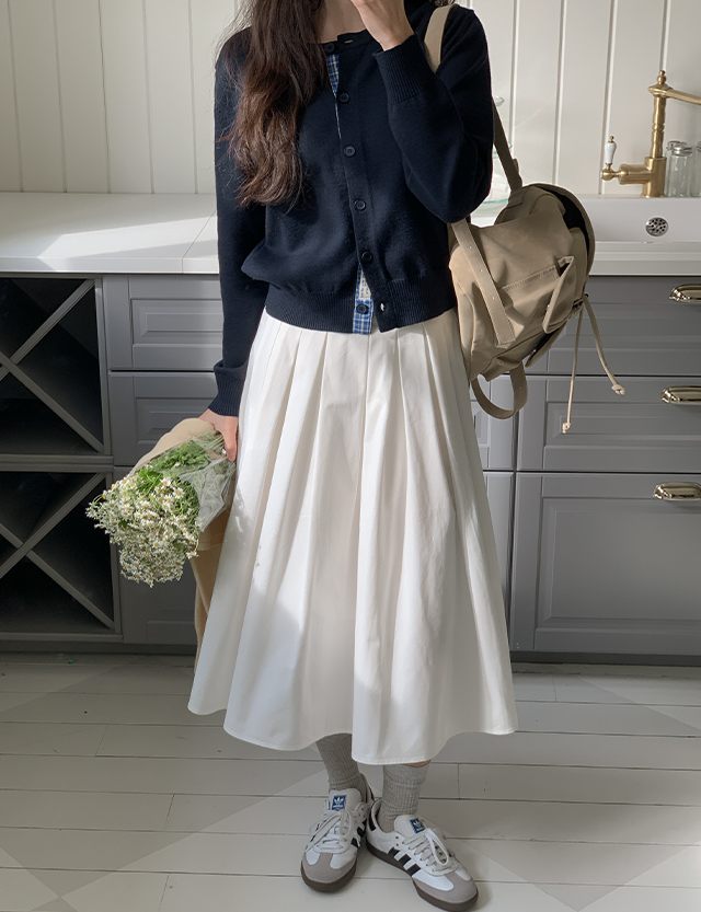 러리븐 핀턱 뒷밴딩 미디 スカート 86180