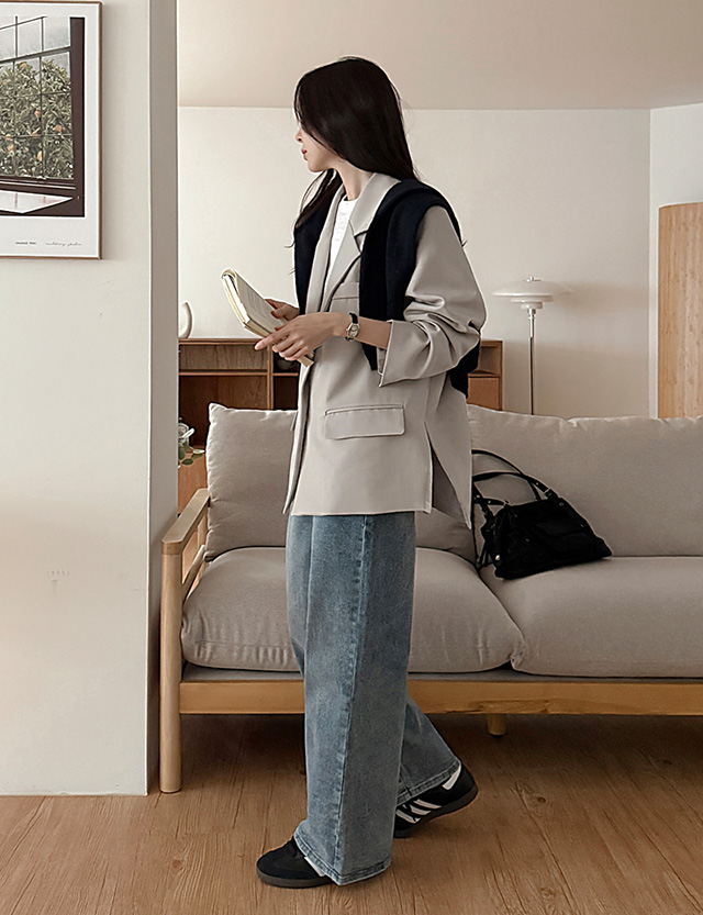[3가지기장] 무니른 속밴딩 ワイド デニム パンツ 86240