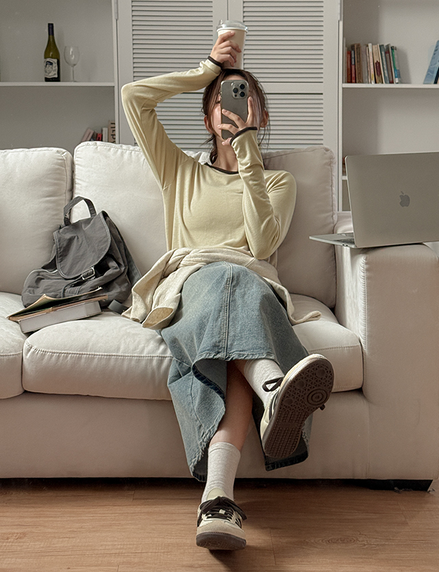 레모디 カラー 配色 長袖 ティーシャツ 86164