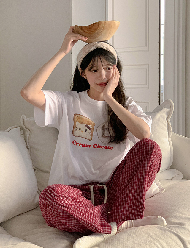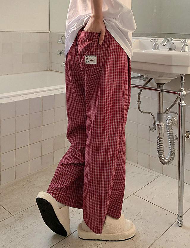 달라붙지 않아 편안한 チェック パジャマ ゴム パンツ 86361