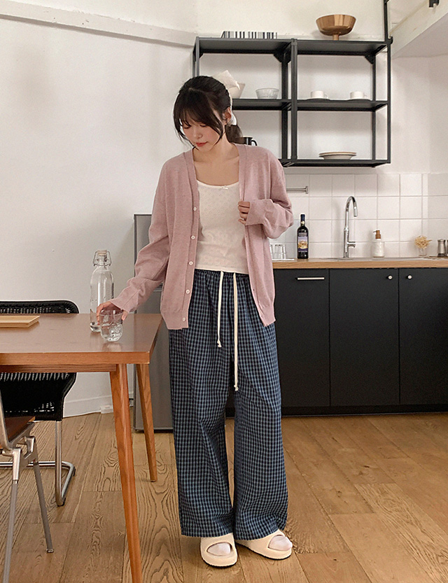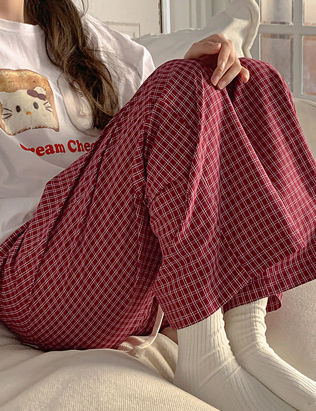 달라붙지 않아 편안한 チェック パジャマ ゴム パンツ 86361