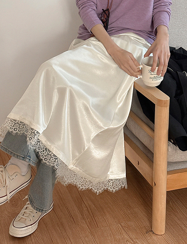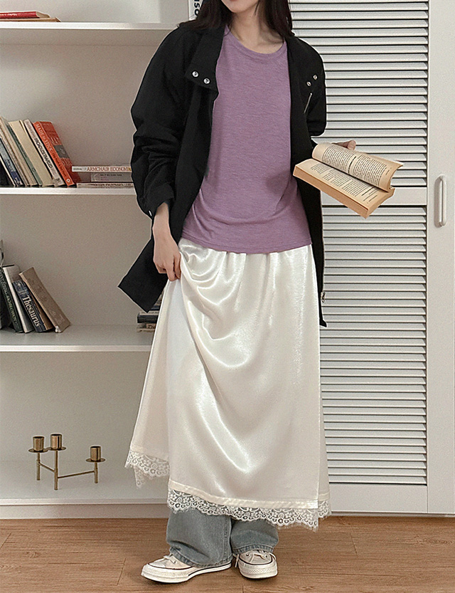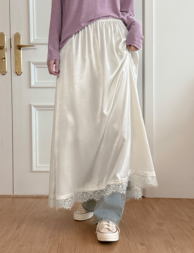 [09초이스][하체커버] 촉감굿 여신핏 샤틴 レイス ロング ゴム スカート 86327