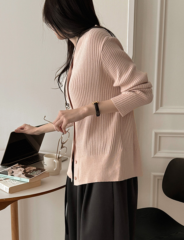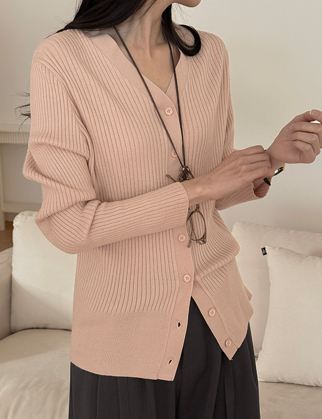 피치스 ソフト リブ編み Vネック ニット カーディガン 86334