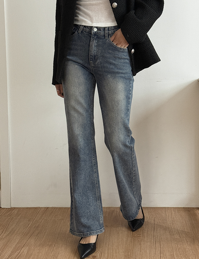 [3가지기장] 헨딩 속밴딩 ウォッシュ ブーツカット デニム パンツ 86279