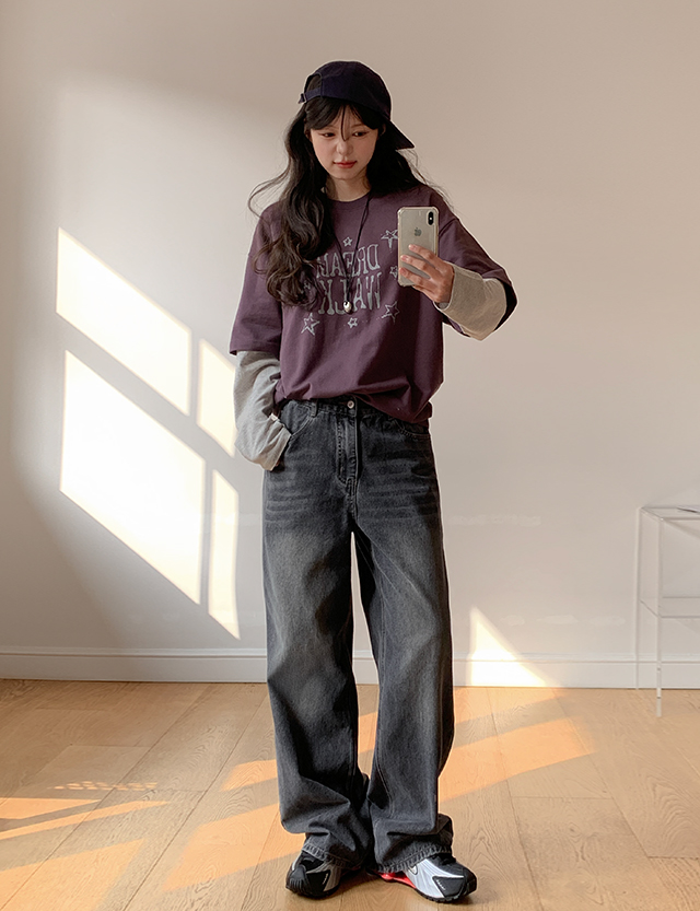 아벤 뒷밴딩 세미와이드 デニム パンツ 86362