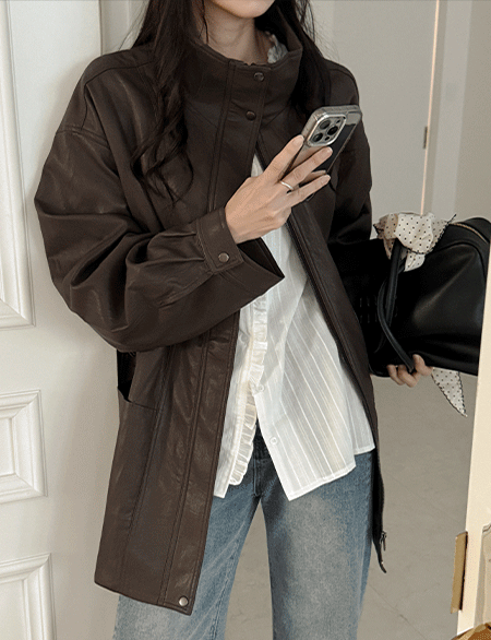 메이니 ストリング ハーフ 레더 ジャケット 86286