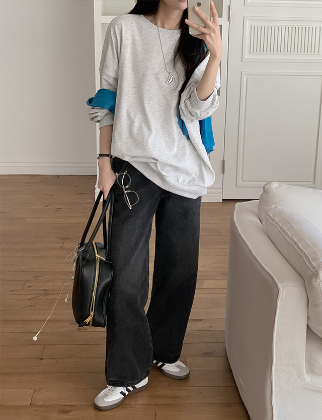 [3가지기장] 뮤티드 속밴딩 サイド 절개 ワイド デニムパンツ 86406