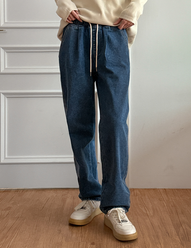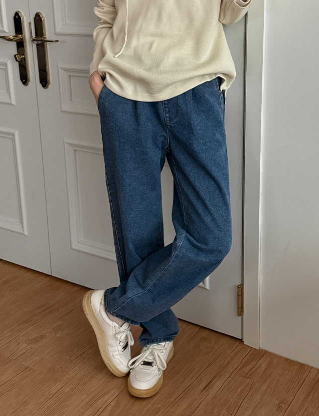 리오 ゴム 핀턱 테이퍼드 デニム パンツ 86242