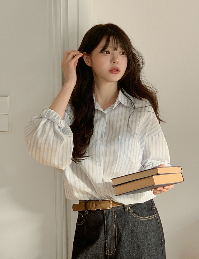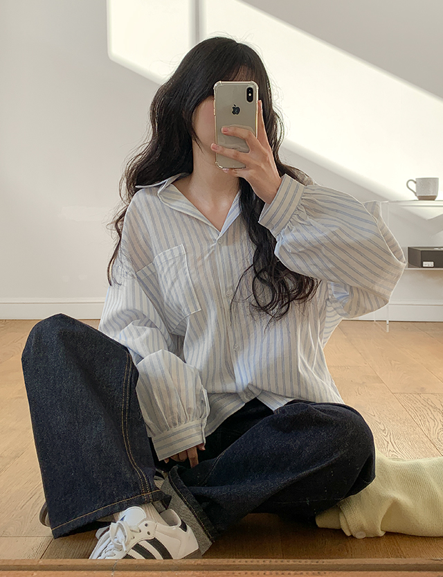 [09초이스] 메이티 ルーズフィット ストライプ シャツ 86363
