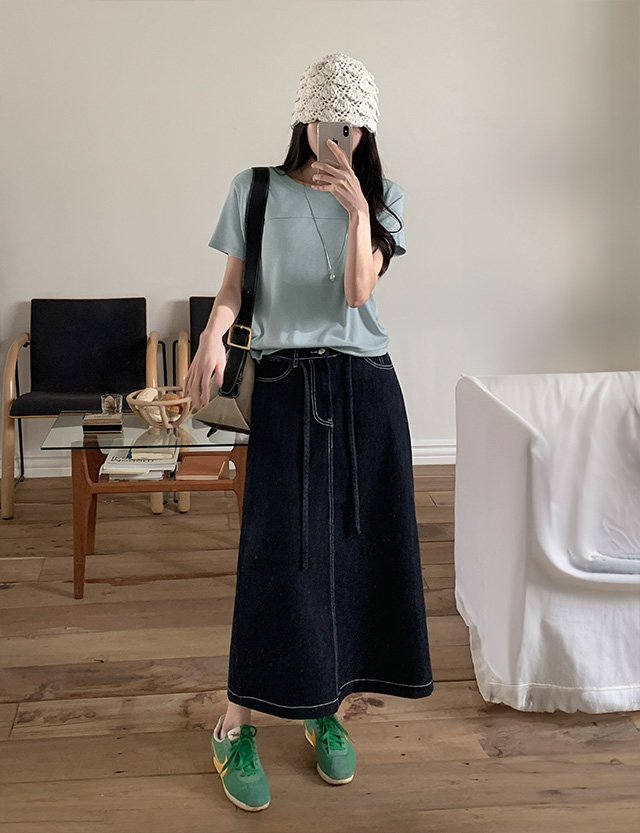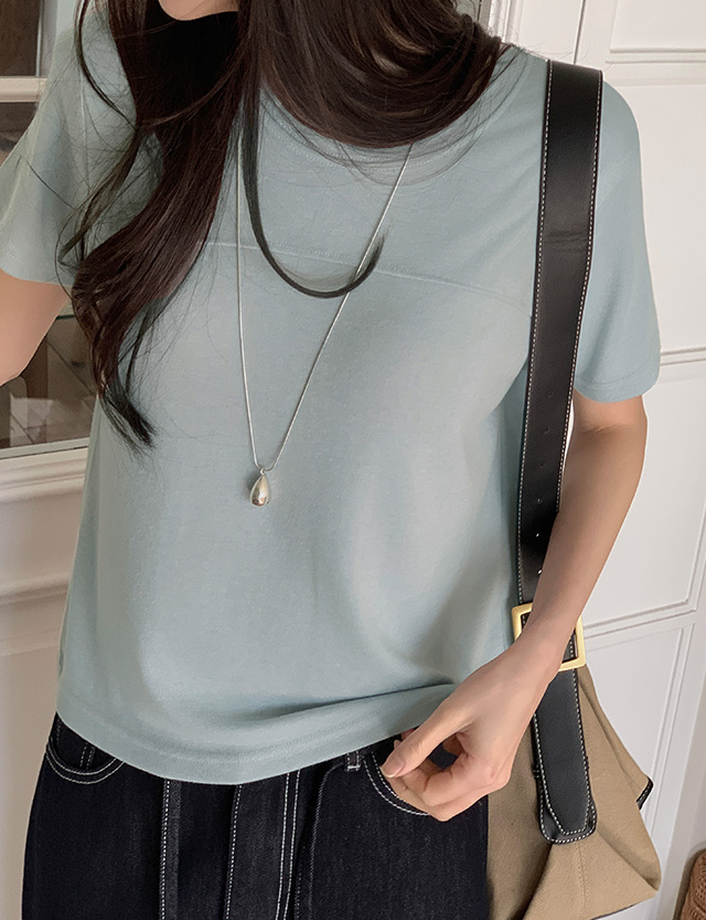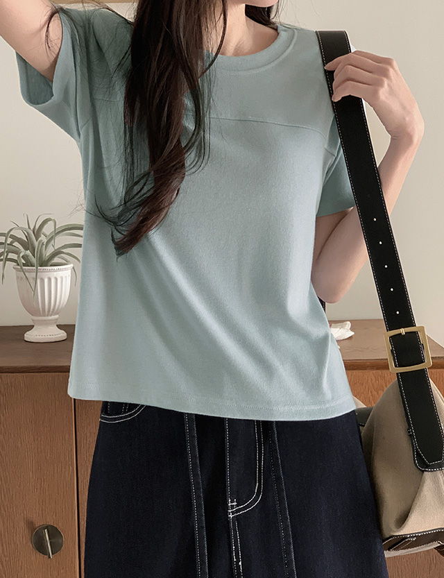 스판쭉쭉 スリム ベーシック デイリー 절개 半袖 ティーシャツ 86451