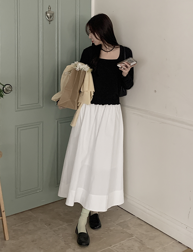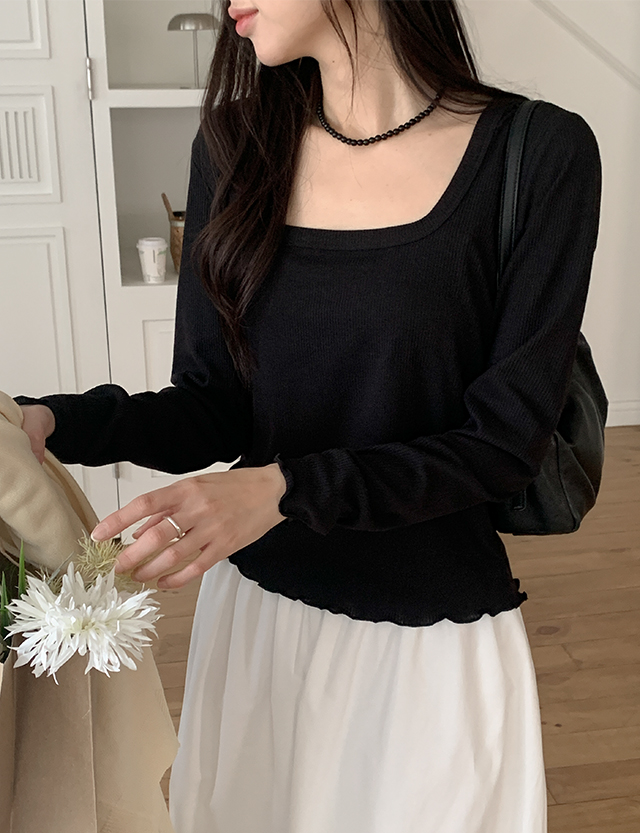 슈플레 스퀘어넥 リブ編み 세미크롭 ティーシャツ 86403