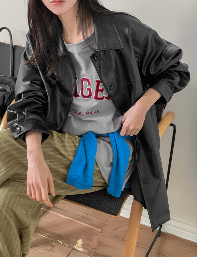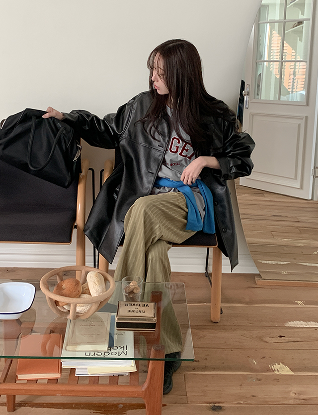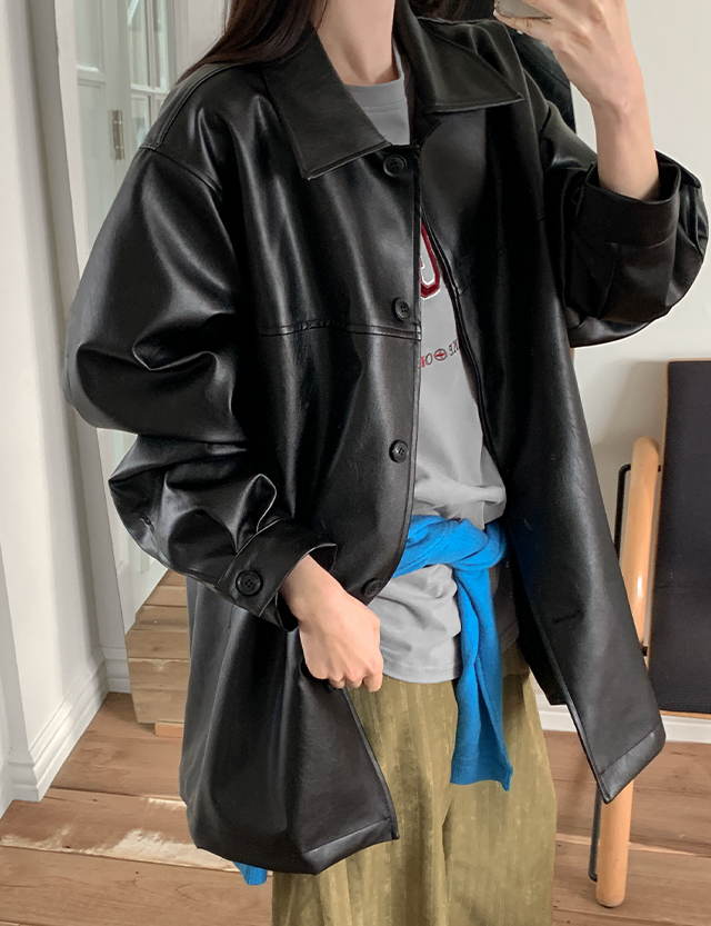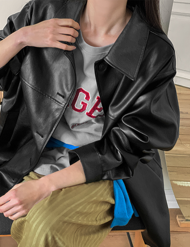 텐더 ルーズフィット 비건 레더 ハーフ ジャケット 86453