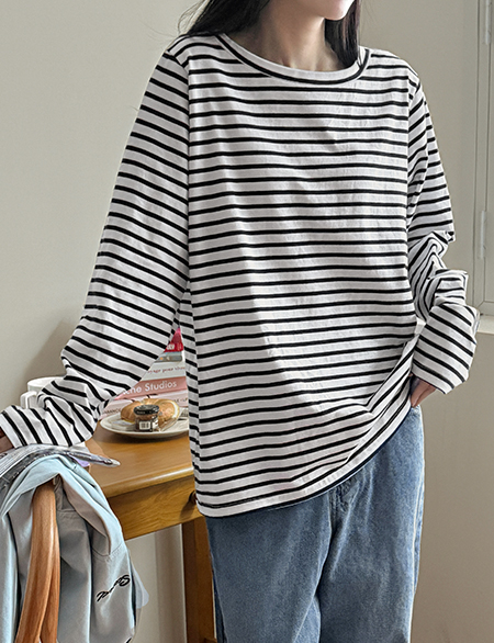 오픈 ストライプ 長袖 ティーシャツ 86336