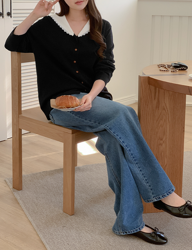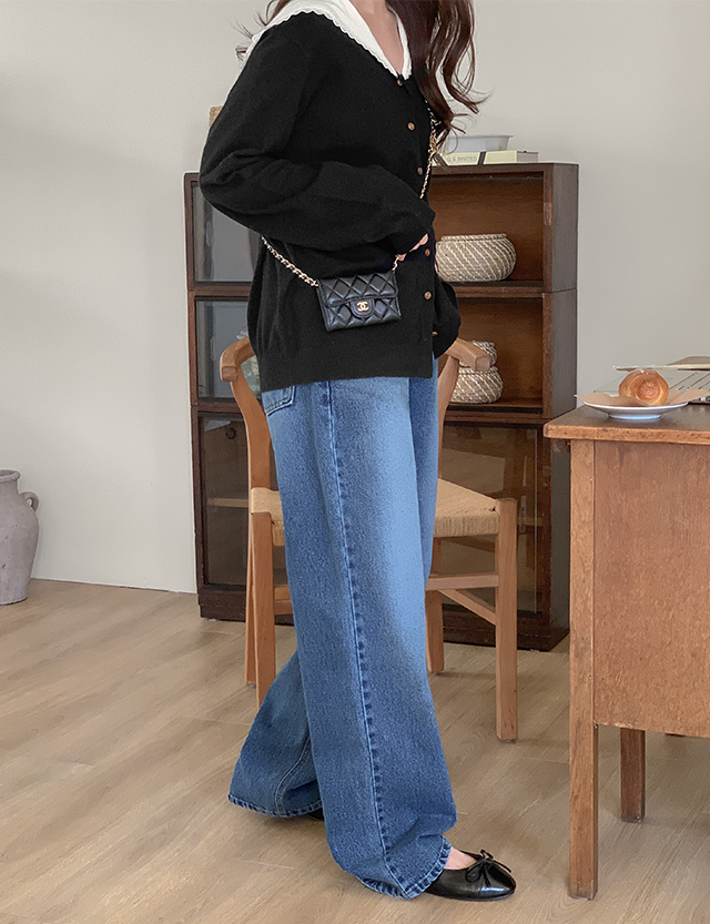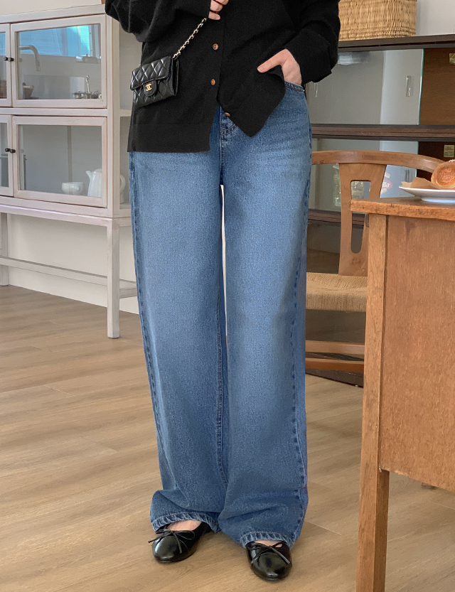 데이븐 シンプル ウォッシュ ワイド デニム パンツ 86321