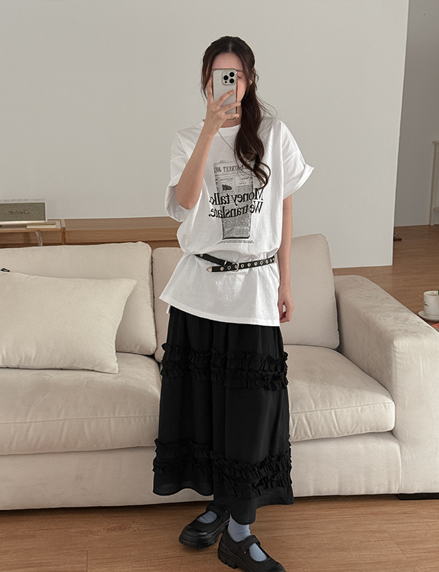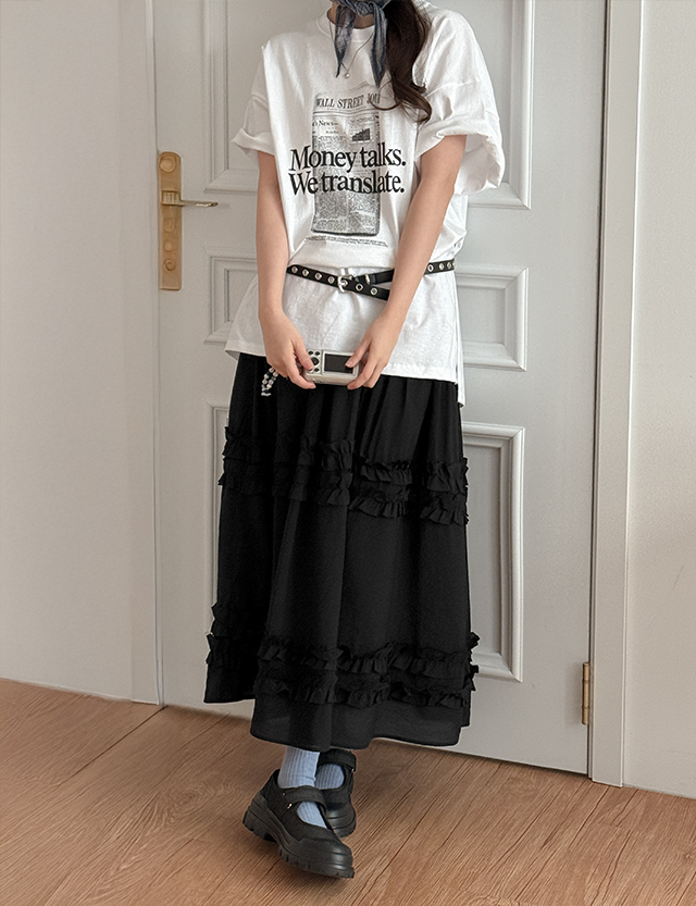 허스티 ゴム フリル ロング スカート 86480