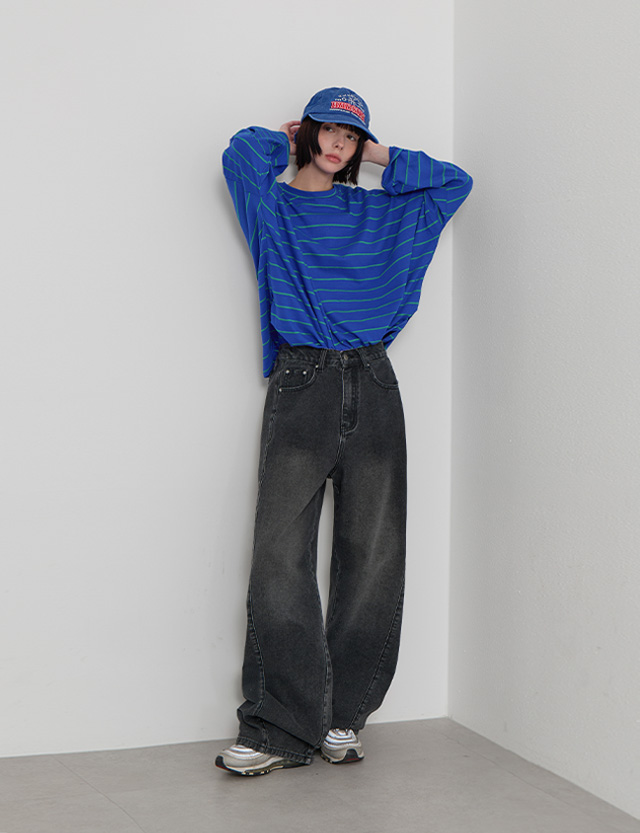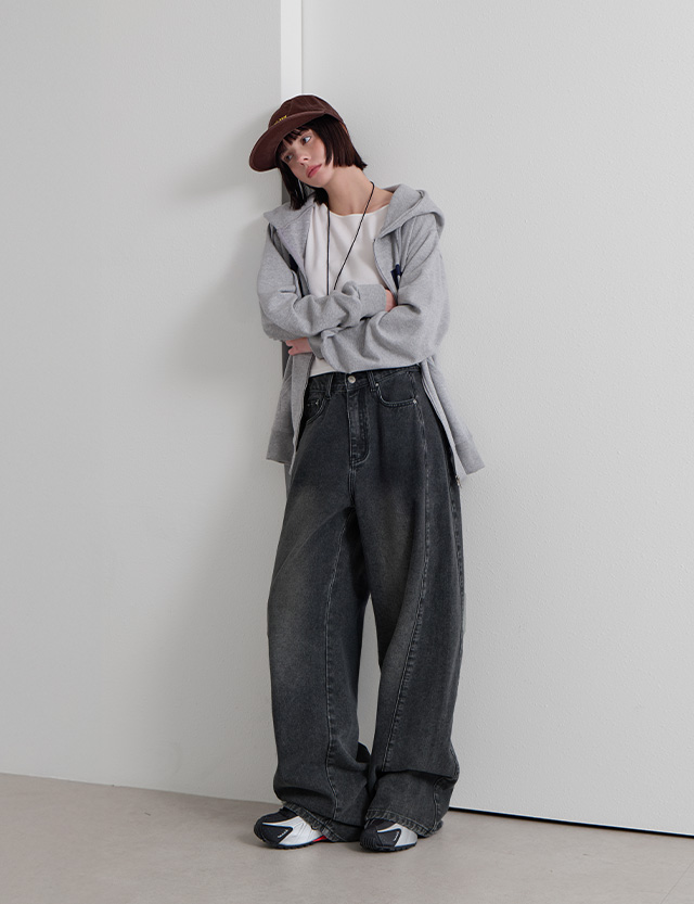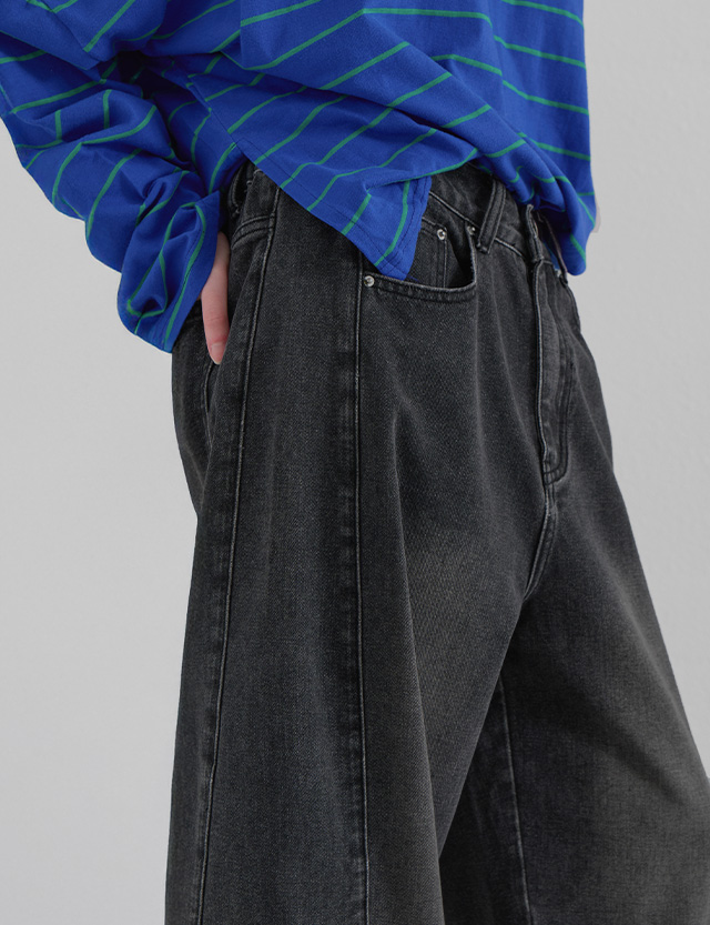 포이디 뒷밴딩 サイド 절개 バルン デニム パンツ 86468