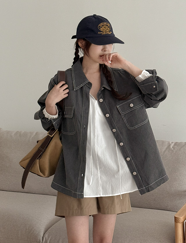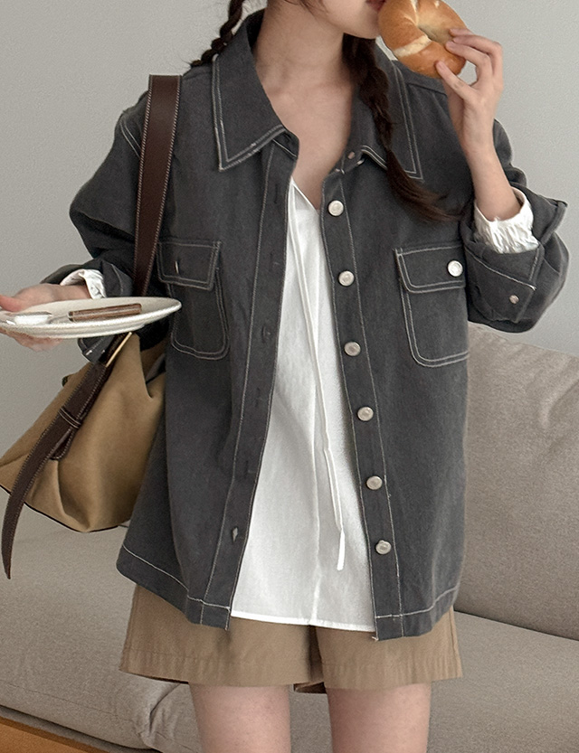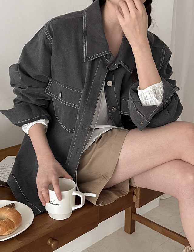 루센틱 カラー 포켓 피그먼트 ジャケット 86490