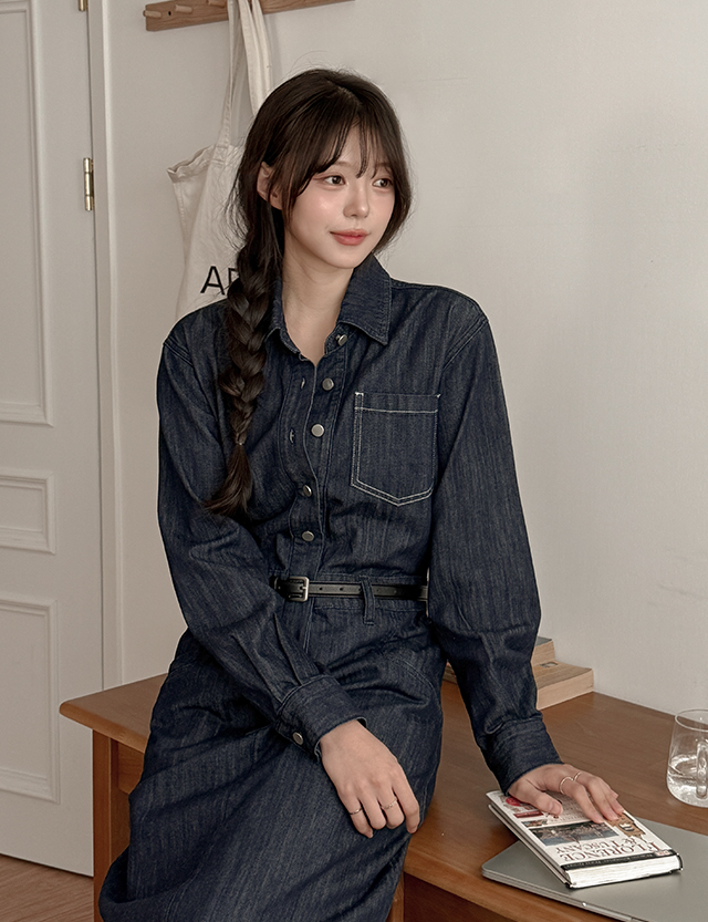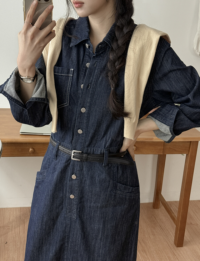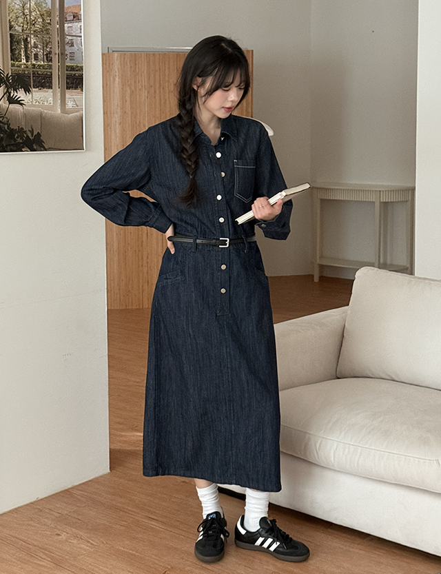 플라네 뒷밴딩 デニム カラー ロング ワンピース 86385