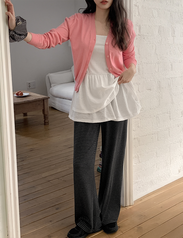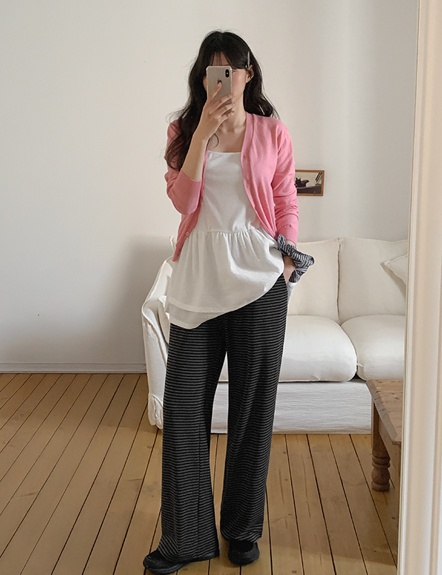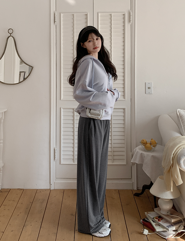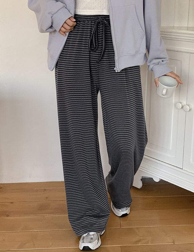 온앤온 ストライプ ワイド ゴム パンツ 86538