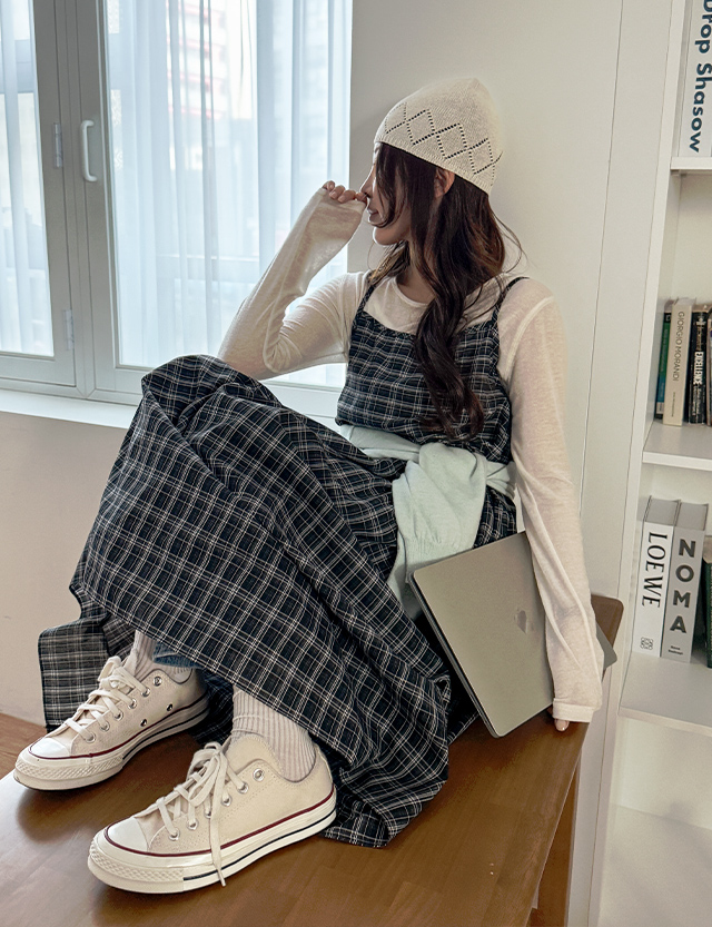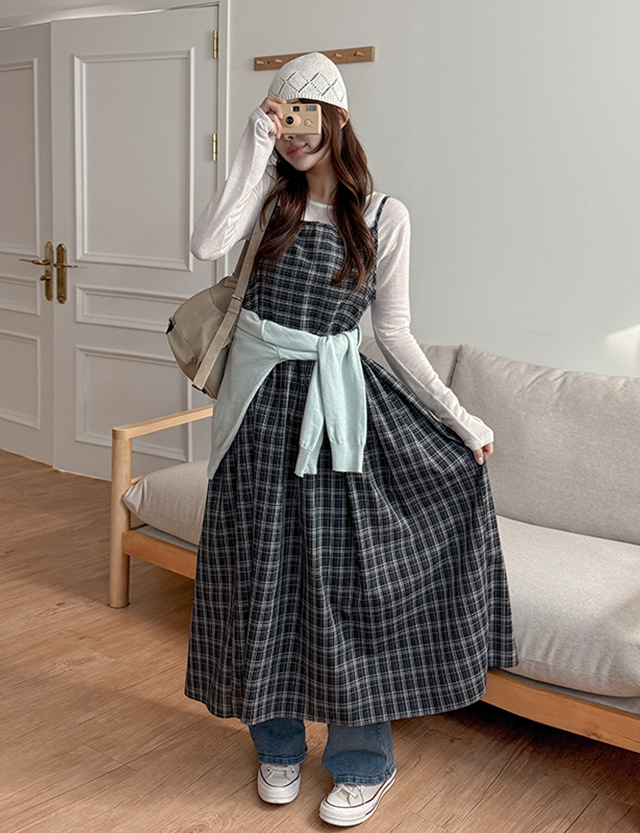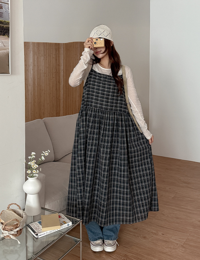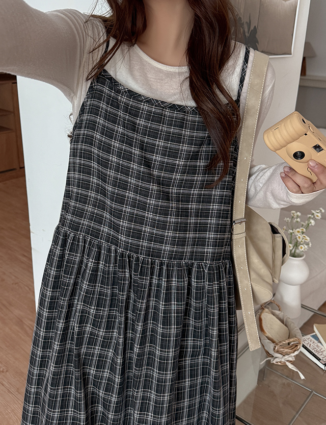 체이스 フレア チェック 뷔스티에 ロング ワンピース 86425
