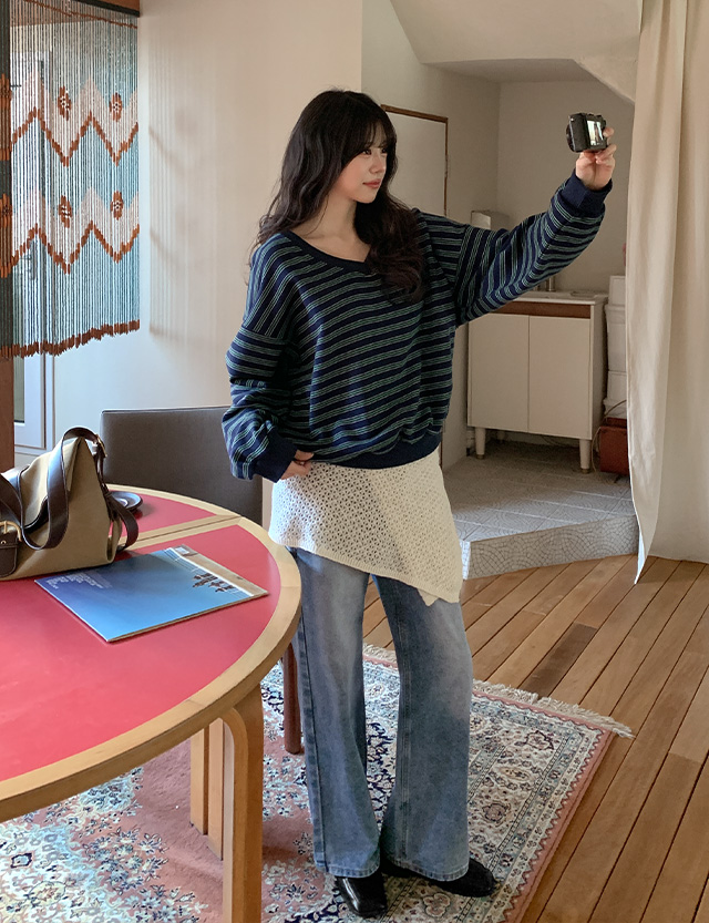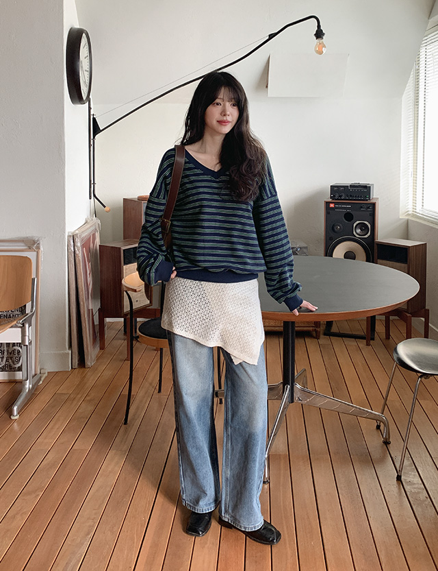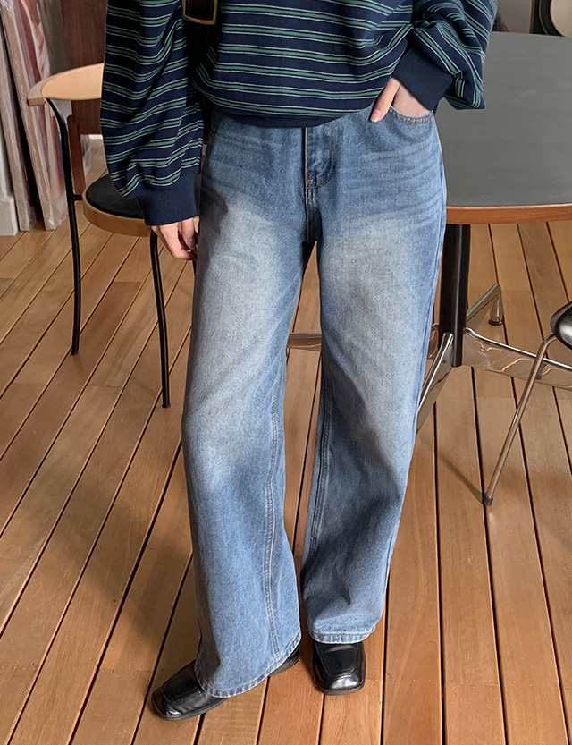 [3가지기장] 언제나 내핏 그대로 뒷밴딩 세미 ワイド デニム パンツ 86644