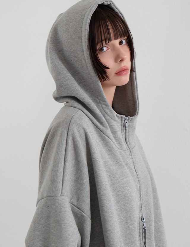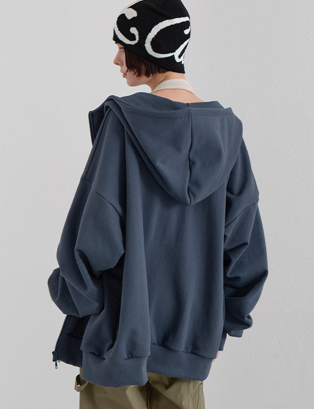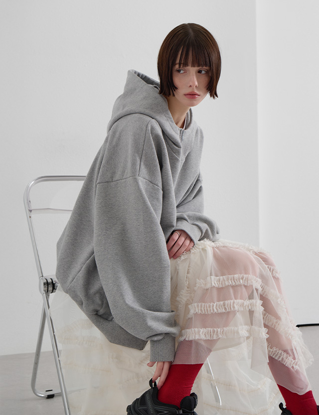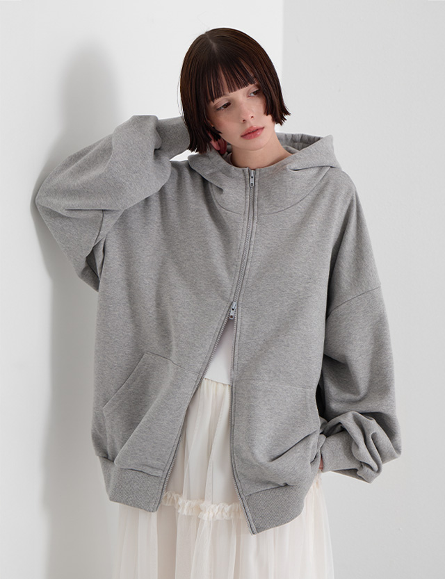 모네브 ハイネック ルーズフィット フード  ジップアップ 86622