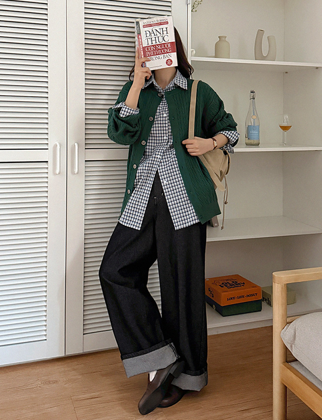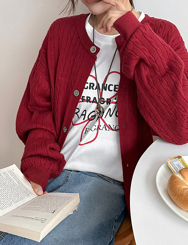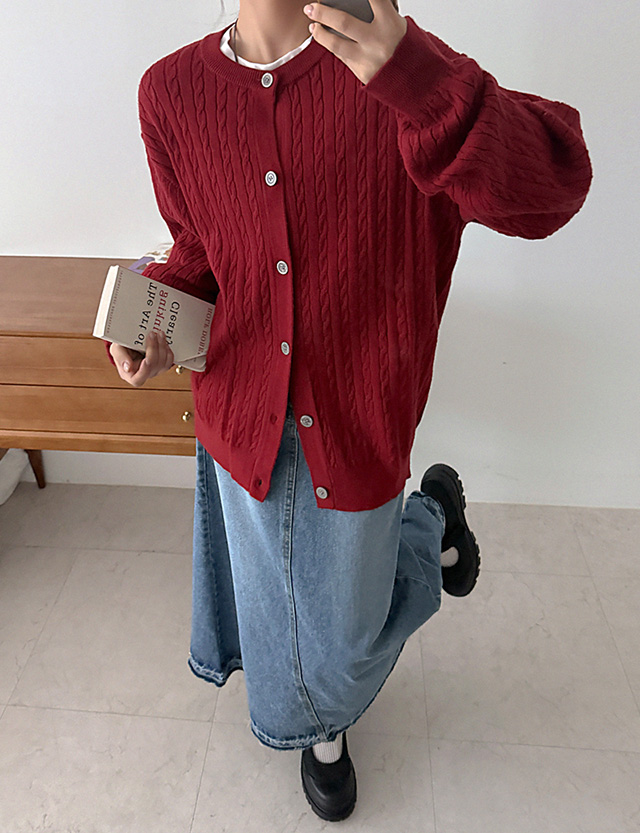 브리오스 ケーブル編み ラウンド ルーズフィット カーディガン 86416