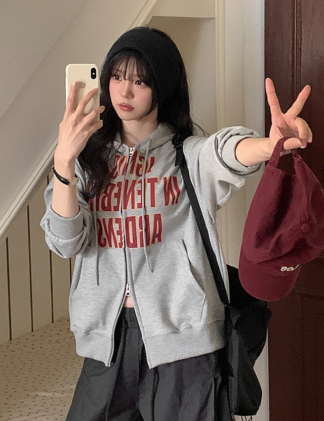 요니크 ルーズフィット プリンティング 2way フード ジップアップ 86660