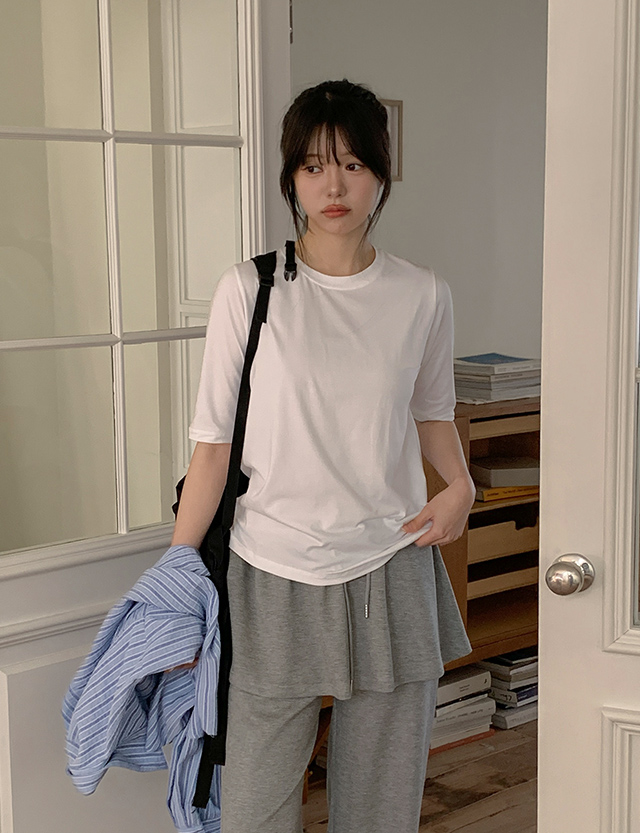 꼭 필요할걸 デイリー スリム 5分丈 ティーシャツ 86708