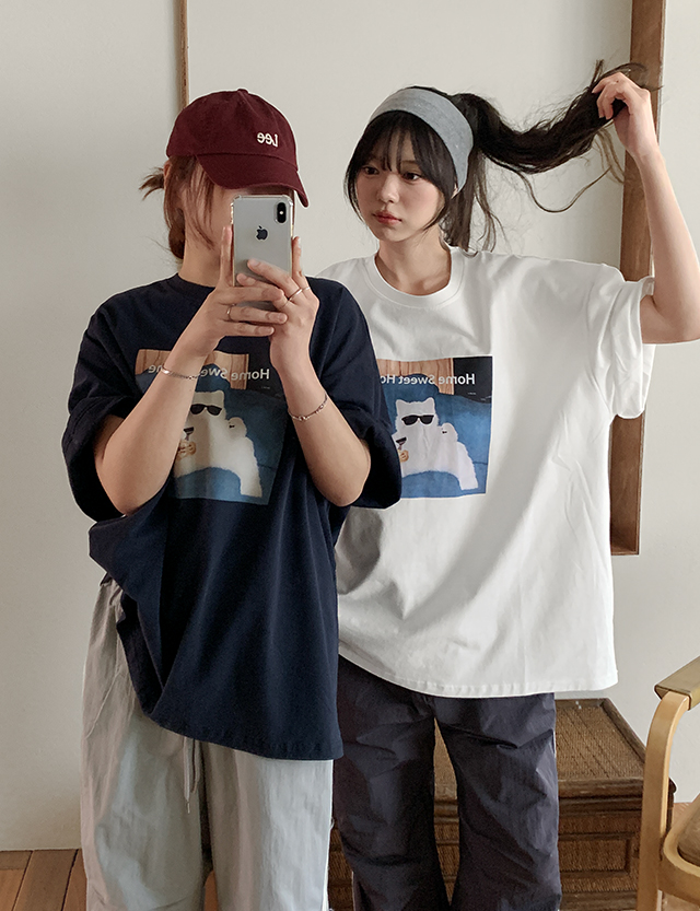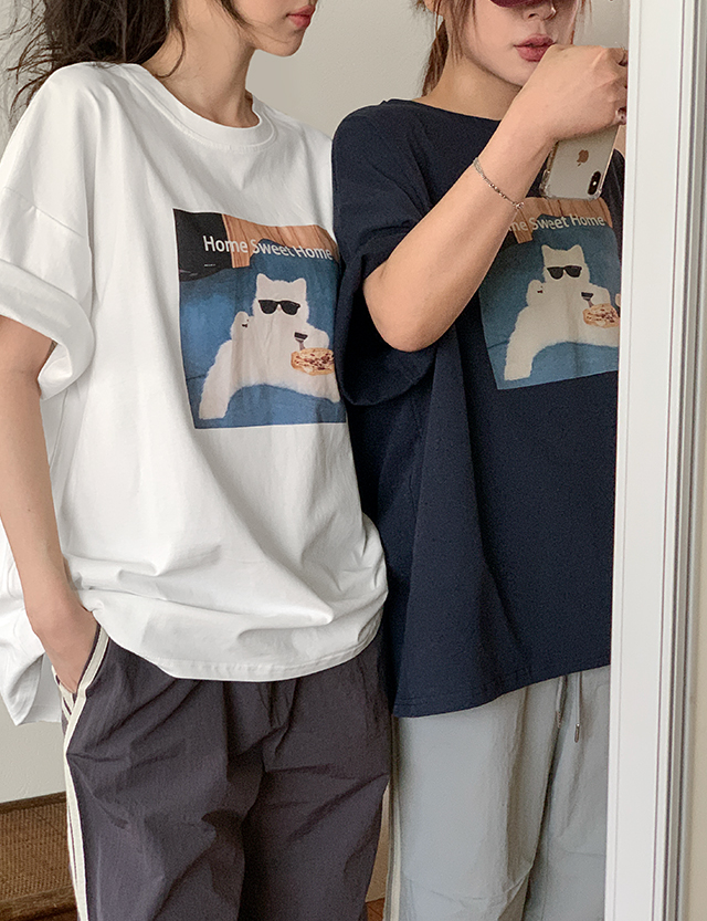 [09초이스] 스윗마이홈 캣츠 ルーズフィット 半袖 ティーシャツ 86537