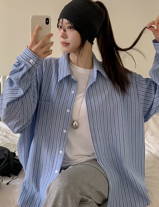 핀터감성 ルーズフィット ストライプ シャツ 86709